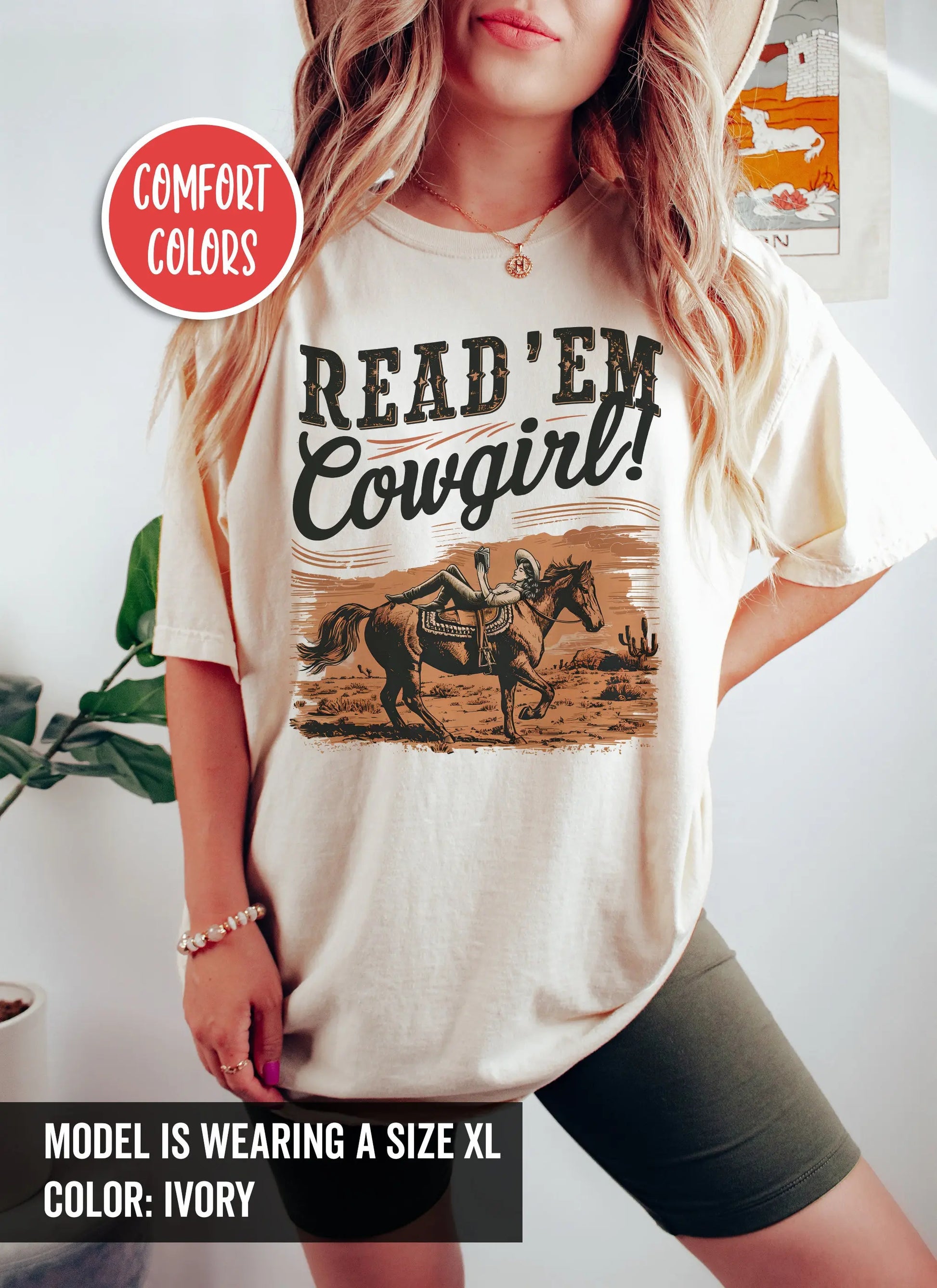 Read Em Cowgirl T Shirt Bookish Cowboy Romance Howdy Yeehaw Book Lover Reader Vintage Western